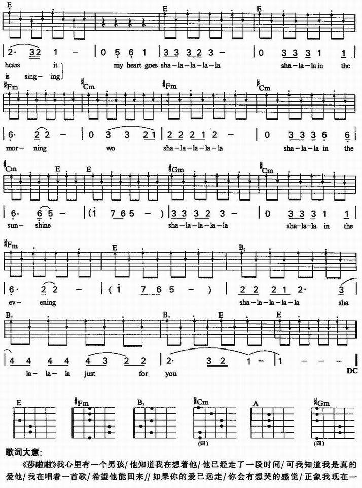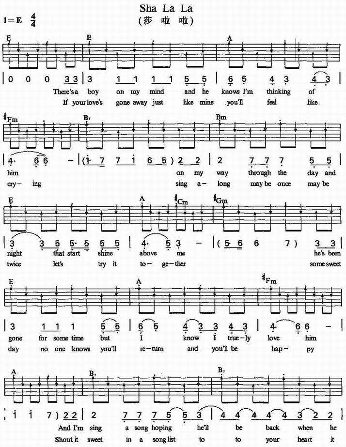 Sha La La(莎啦啦)-吉他谱(六线谱)