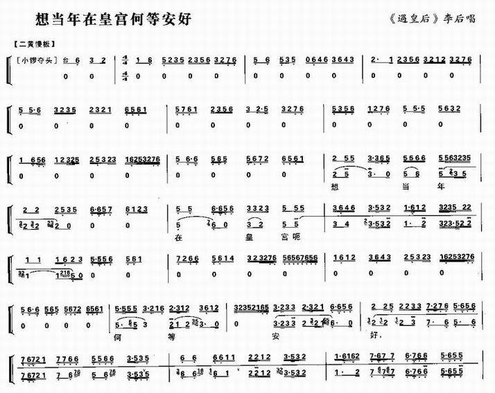 >> 想当年在皇宫何等安好-《遇皇后》李后唱段(京剧琴谱_简谱)