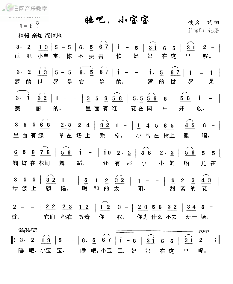 >> 睡吧,小宝宝-少儿歌曲(简谱)