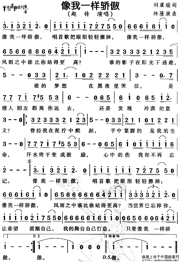 >> 像我一样骄傲-赵传(简谱)