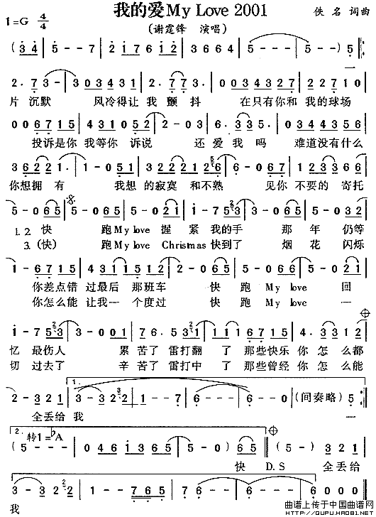 >> 我的爱 My Love 2001-谢霆锋(简谱)