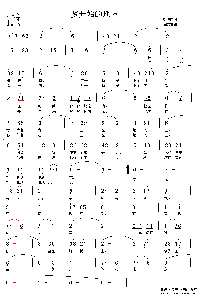 梦开始的地方-刘顶柱词 范援朝曲(简谱)