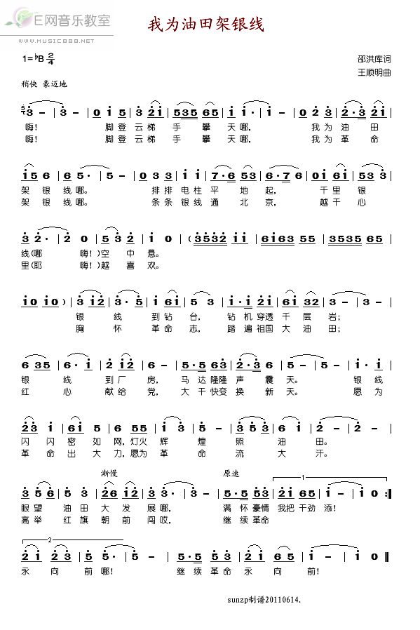 我为油田架银线-郭颂(简谱)