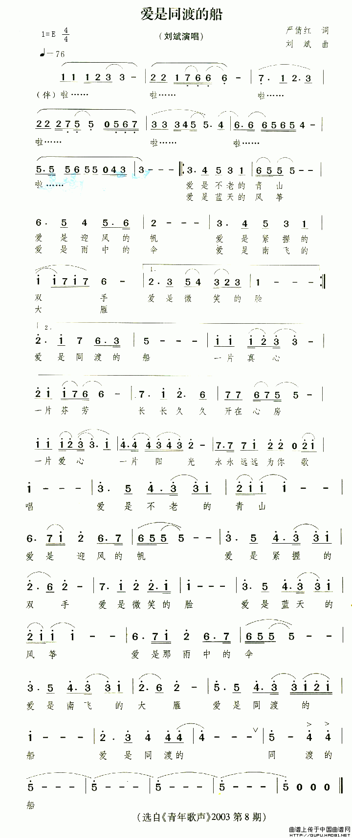 >> 爱是同渡的船-刘斌(简谱)