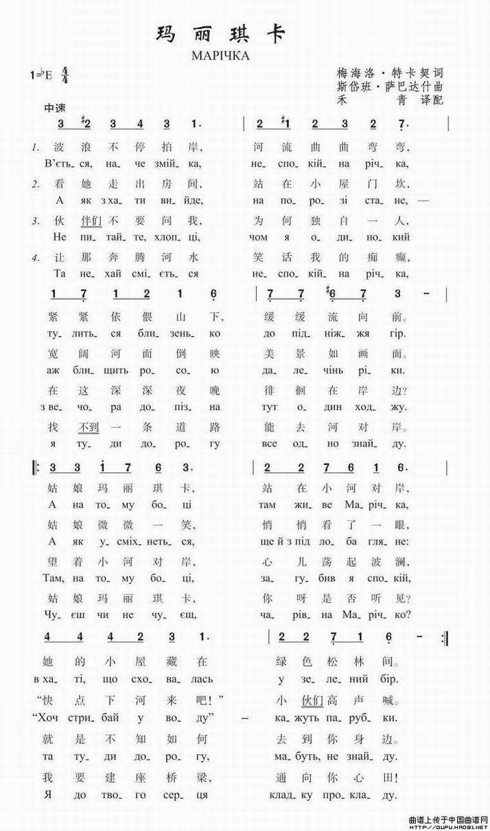 >> 玛丽琪卡-乌克兰歌曲(简谱)