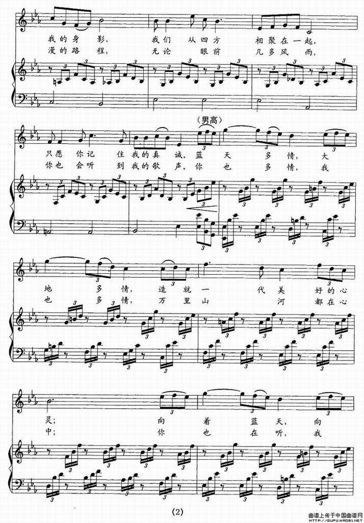 >> 歌声伴我们一路同行-钢琴谱(五线谱)