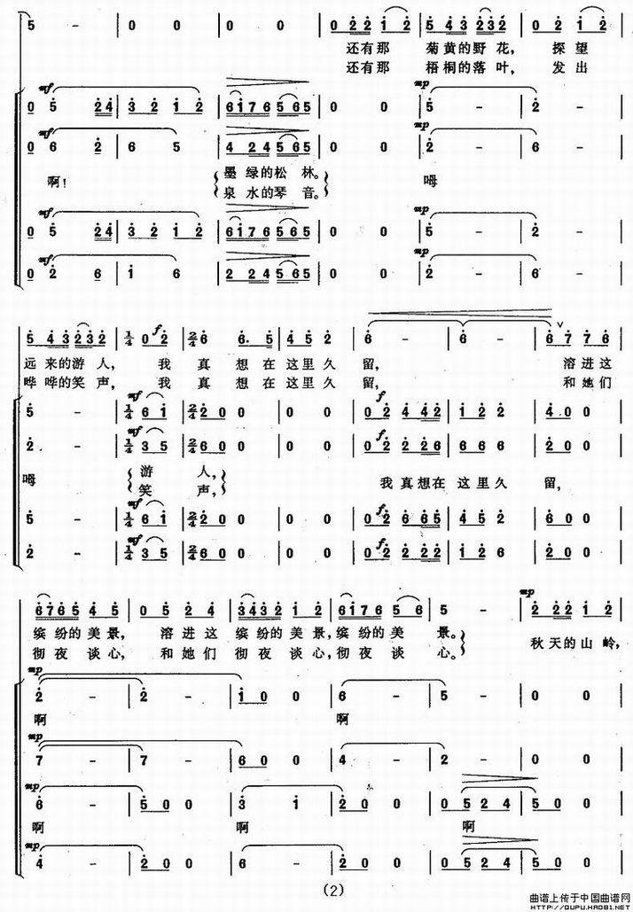 >> 你可见过秋天的山岭-女声领唱 合唱(合唱简谱)
