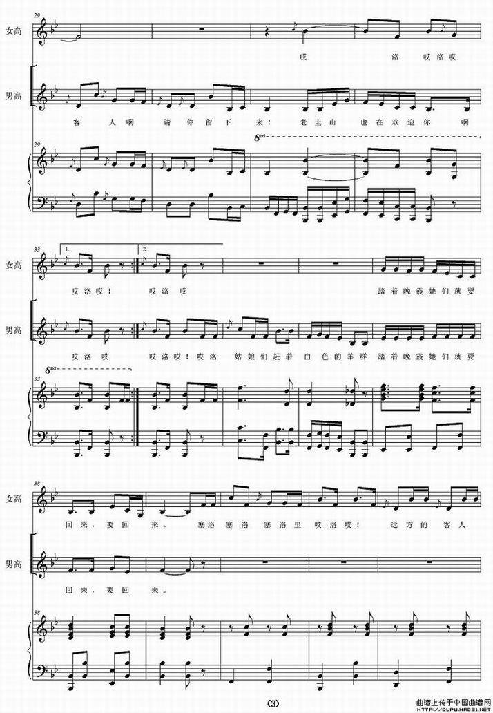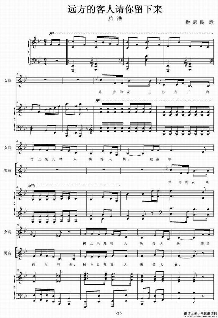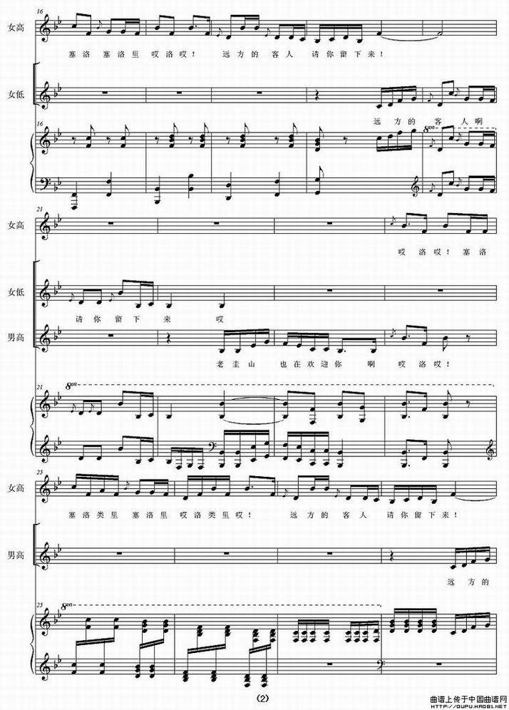 远方的客人请你留下来-混声合唱(钢琴谱 合唱五线谱)