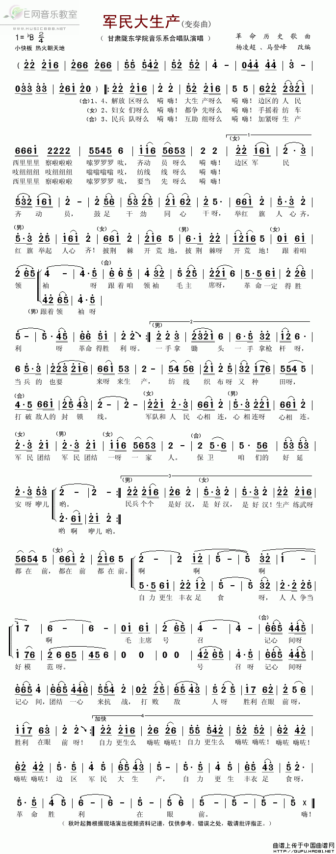 >> 军民大生产-变奏曲_陇东学院音乐系合唱队(简谱)
