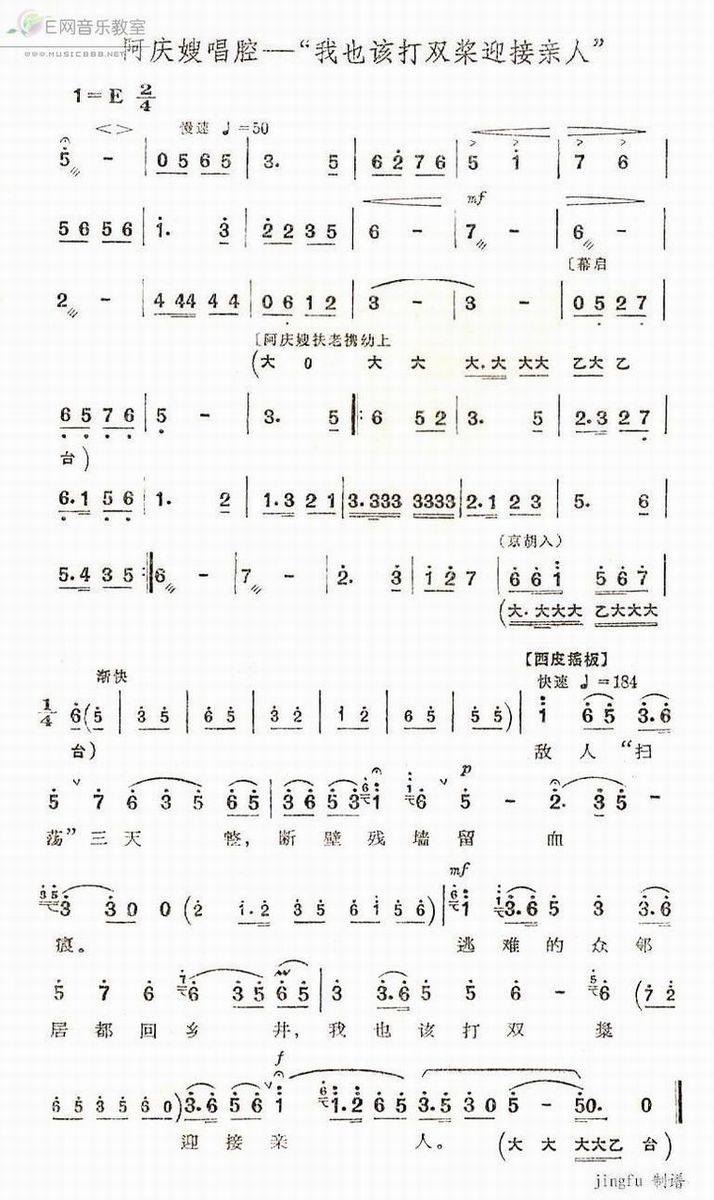 >> 我也该打双桨迎接亲人-阿庆嫂唱腔(京剧简谱)