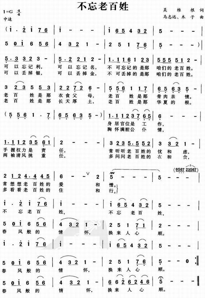 >> 不忘老百姓-吴维根词(简谱)