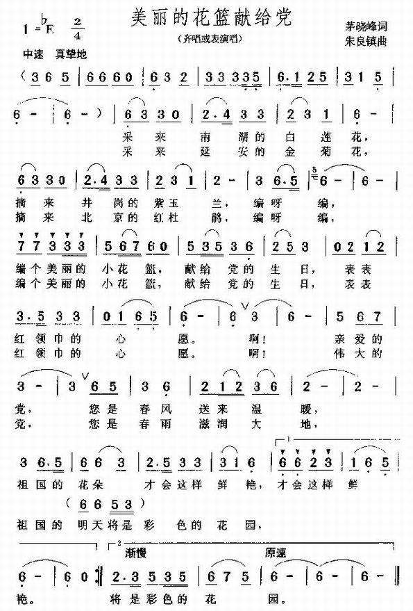 >> 美丽的花蓝献给党-少儿歌曲(简谱)