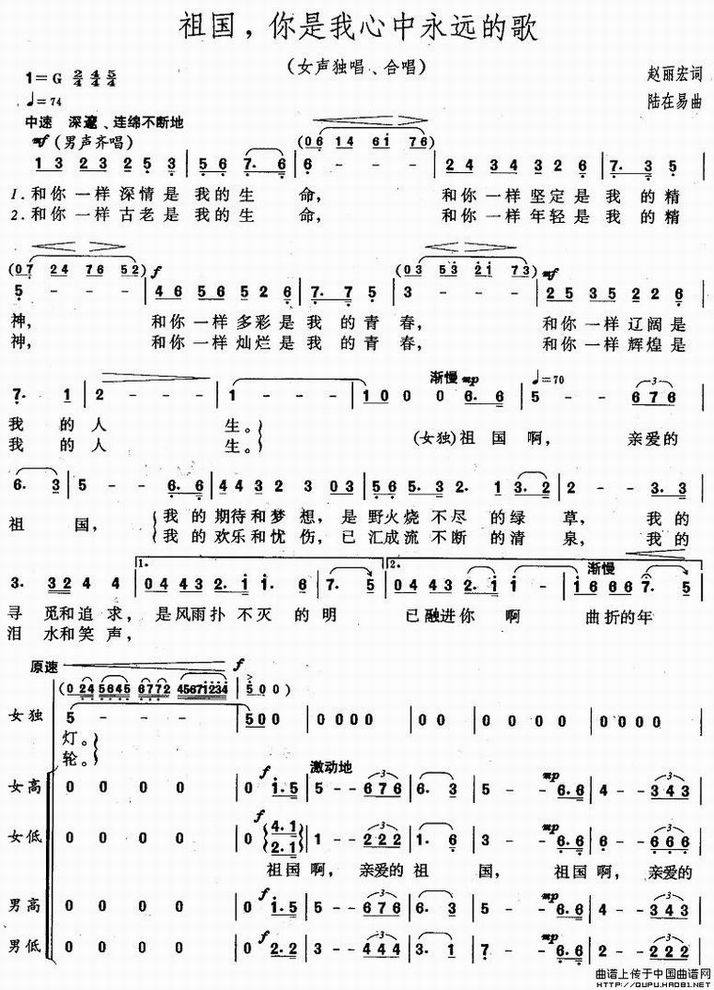 >> 祖国,你是我心中永远的歌-领唱、合唱(简谱)
