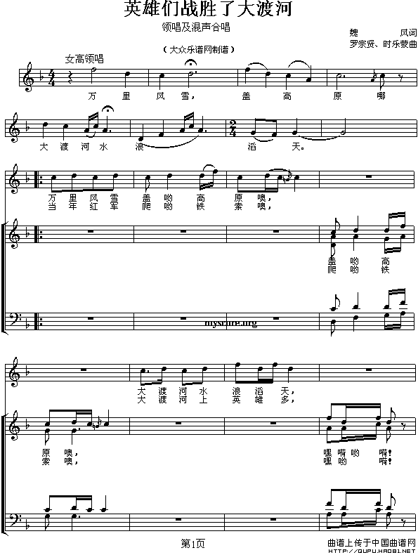 英雄们战胜了大渡河-领唱、混声合唱(线谱) (1)