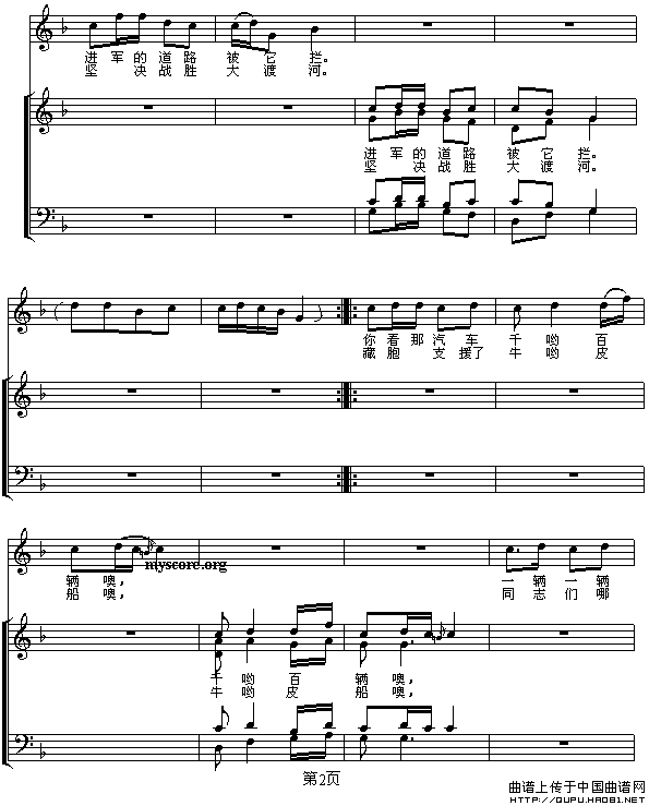 >> 英雄们战胜了大渡河-领唱、混声合唱(线谱)