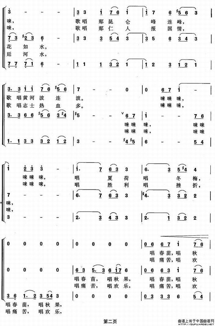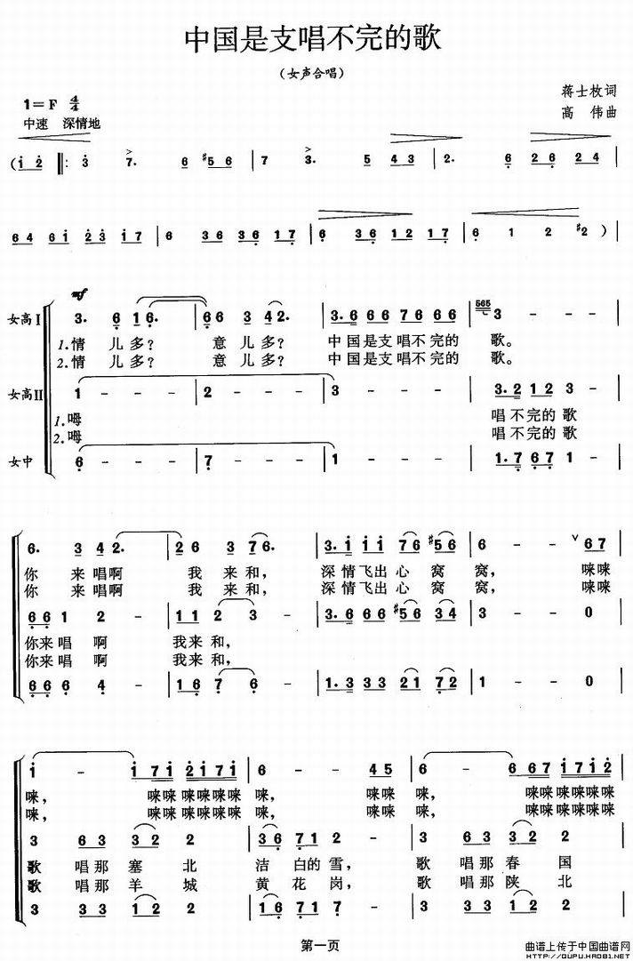 >> 中国是支唱不完的歌-女声合唱(简谱)