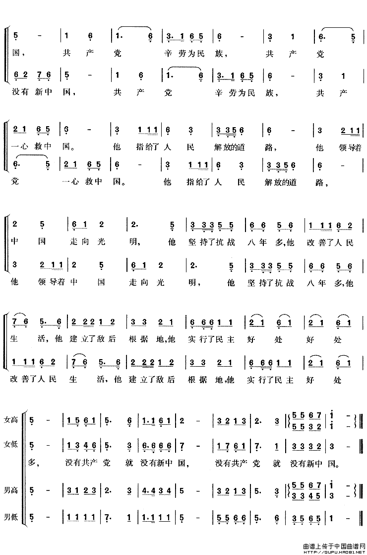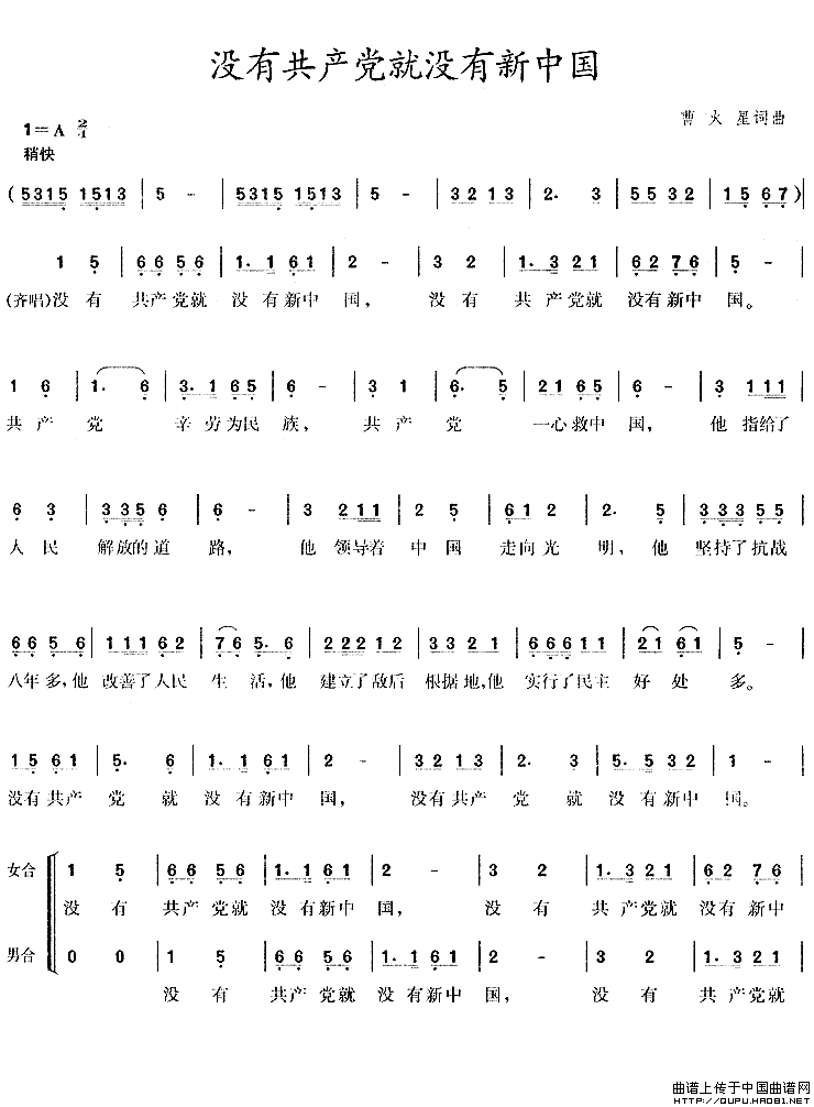 >> 没有共产党就没有新中国-合唱(简谱_版本2)