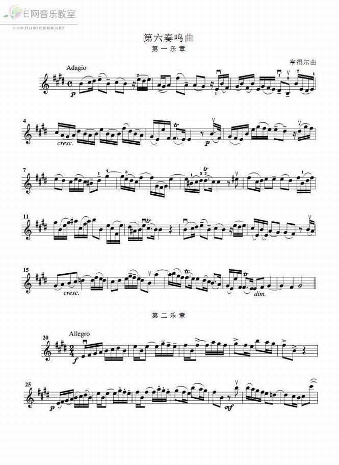 >> 第六奏鸣曲-亨德尔曲(小提琴谱_线谱)