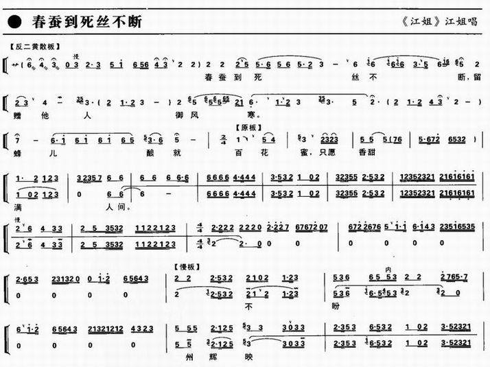 >> 春蚕到死丝不断-《江姐》江姐唱段(京剧琴谱_简谱)