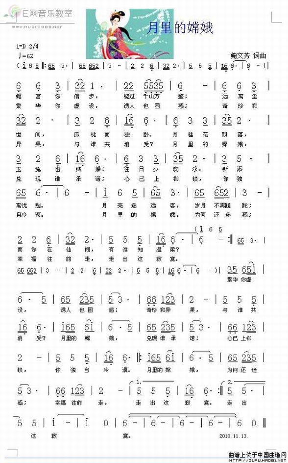 >> 月里的嫦娥-鲍文芳词曲(简谱)