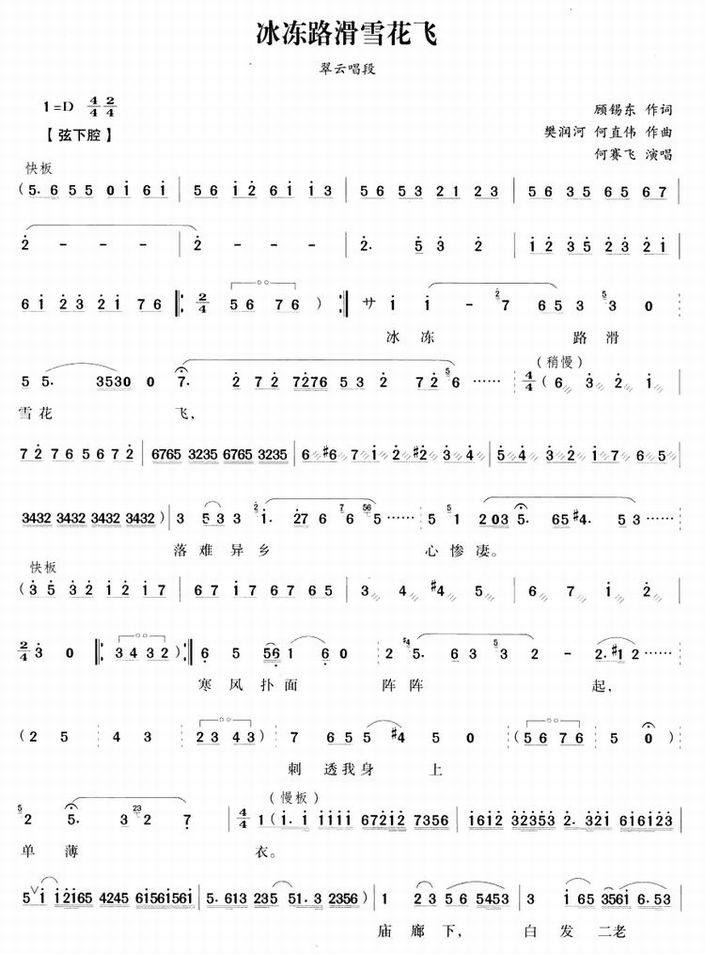 >> 冰冻路滑雪花飞-何赛飞(越剧简谱)
