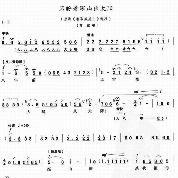 >> 只盼着深山出太阳-京剧《智取威虎山》选段(简谱)