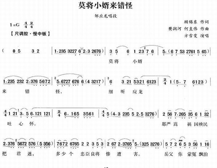 >> 莫将小婿来错怪-邹应龙唱段(越剧简谱)