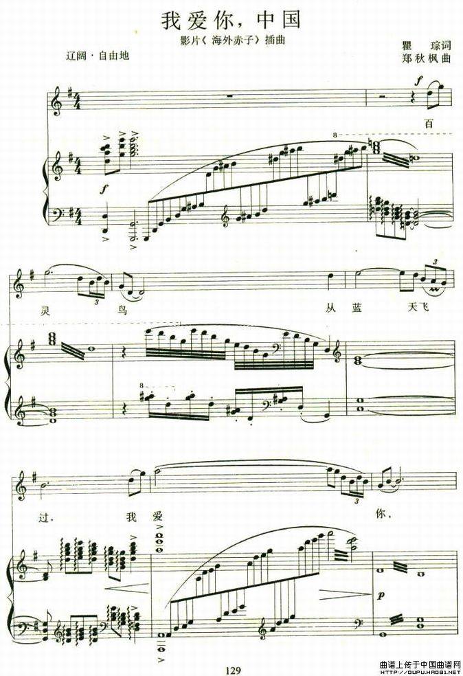 >> 我爱你中国-电影《海外赤子》插曲(钢琴谱)