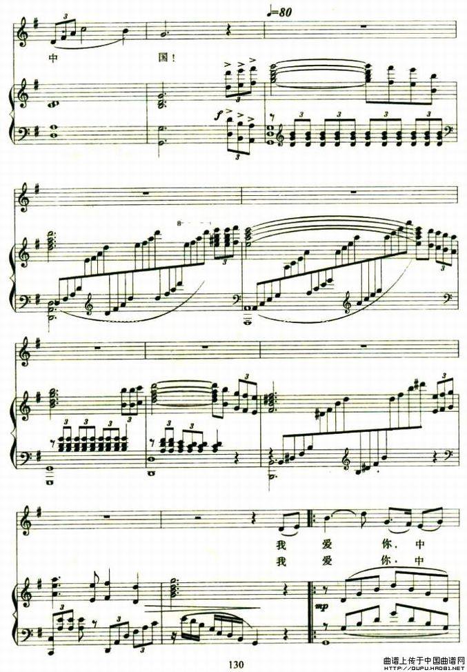 我爱你中国-钢琴曲(五线谱)