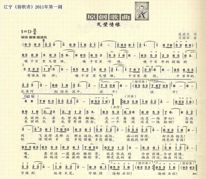 >> 戈壁情缘-连成光词 王国华曲(简谱)