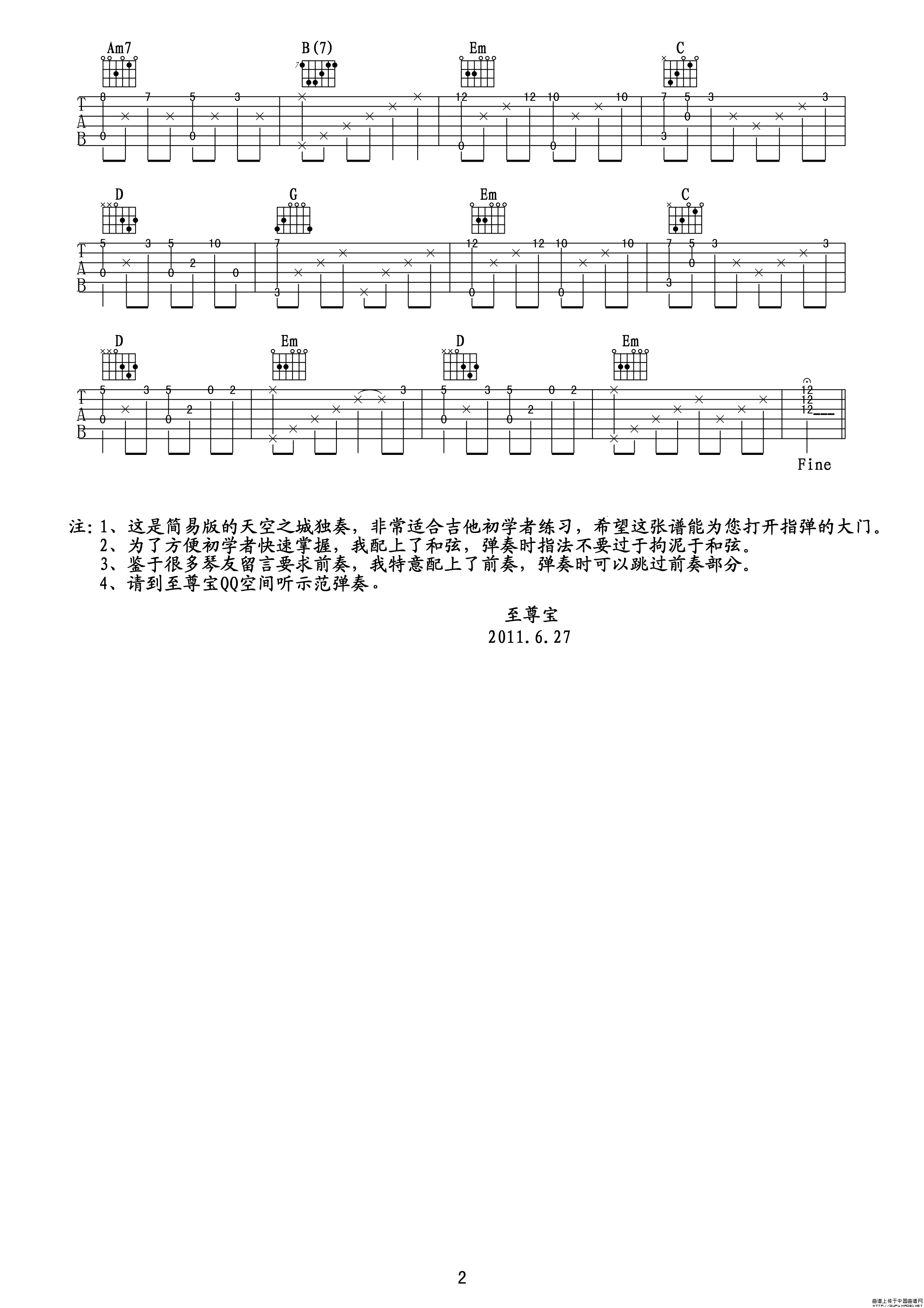 天空之城-指弹独奏(吉他曲谱_简易版)