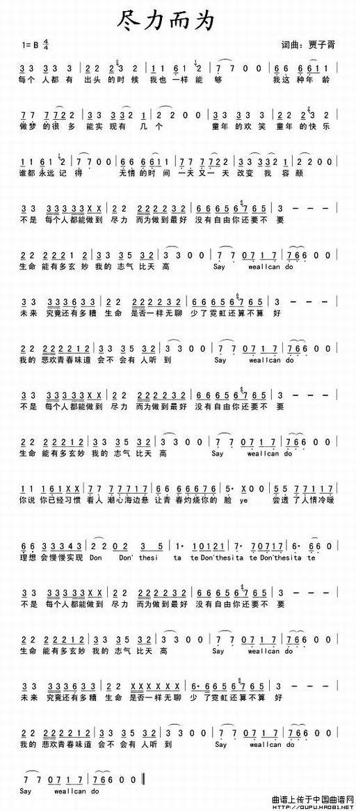 尽力而为-贾子胥 歌词: