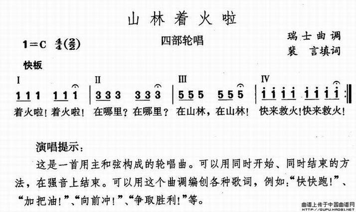 >> 山林着火了-四部轮唱(少儿歌曲简谱)