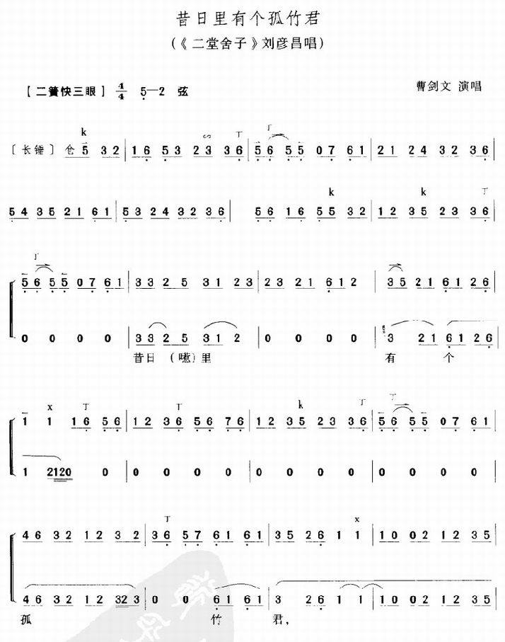 >> 昔日里有个孤竹君-京剧《二堂舍子》刘彦昌唱段(琴谱_简谱)