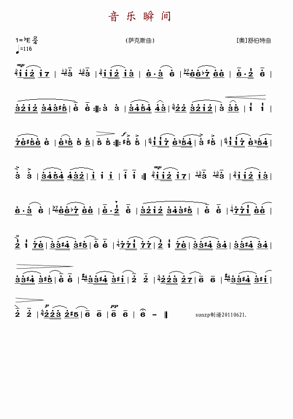 音乐瞬间-舒伯特曲(萨克斯曲谱_简谱+线谱)