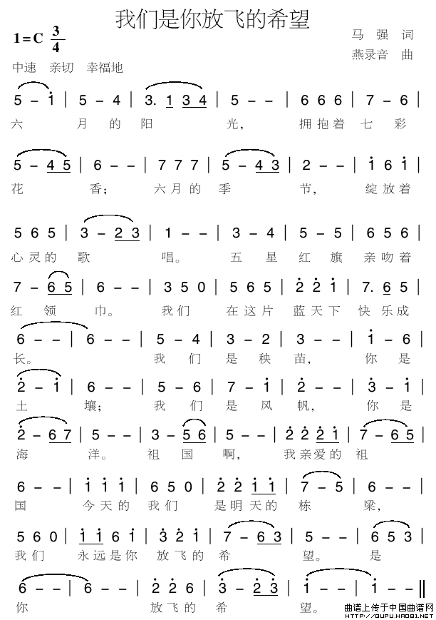 >> 我们是你放飞的希望-少儿歌曲(简谱)
