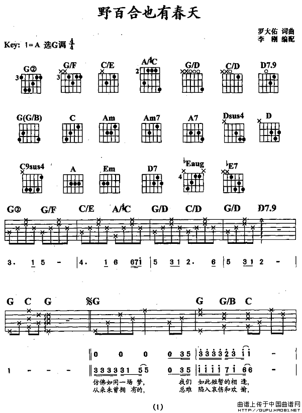 >> 野百合也有春天-罗大佑词曲(吉他谱)
