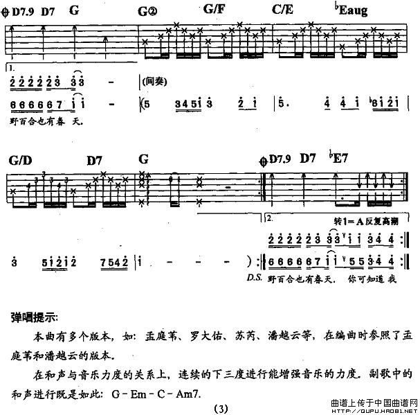 野百合也有春天-罗大佑词曲(吉他谱)