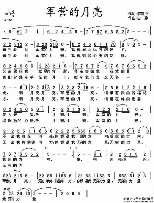军营的月亮 是军营歌曲创作大赛 参赛作品 作词:廖建中 作曲:白勇