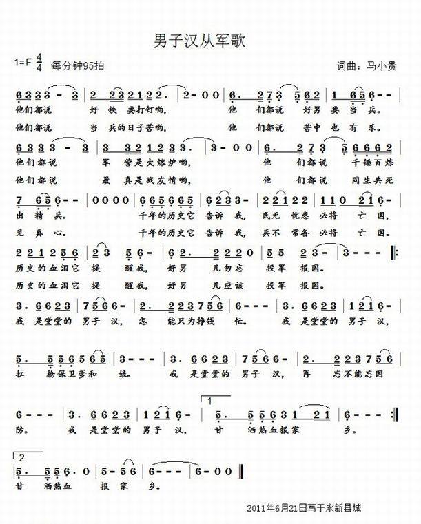 >> 男子汉从军歌-军营创作歌曲(简谱)