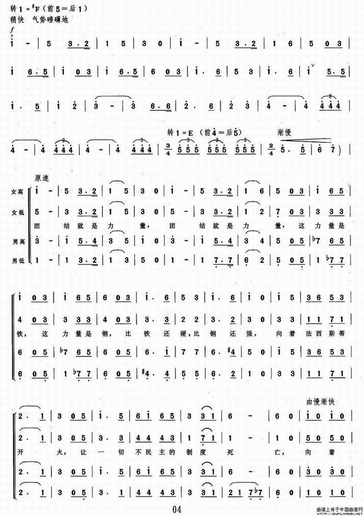 英雄们战胜了大渡河-领唱 混声合唱(简谱)