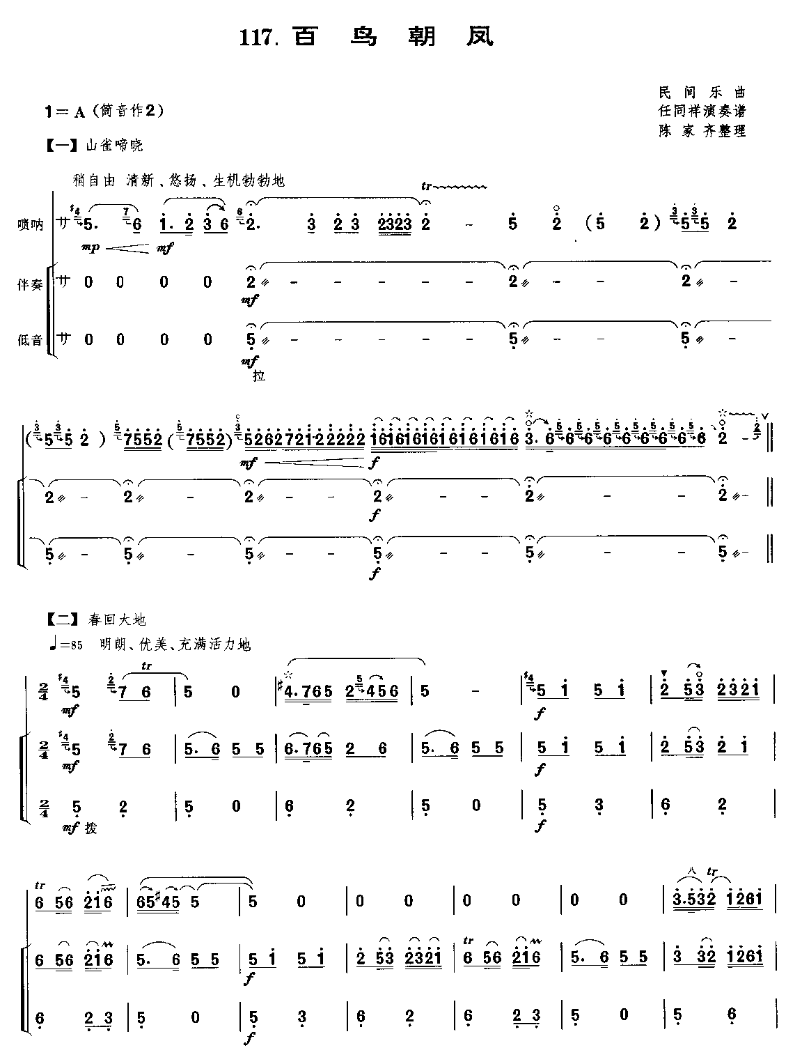 >> 百鸟朝凤-唢呐曲谱(带伴奏_简谱)