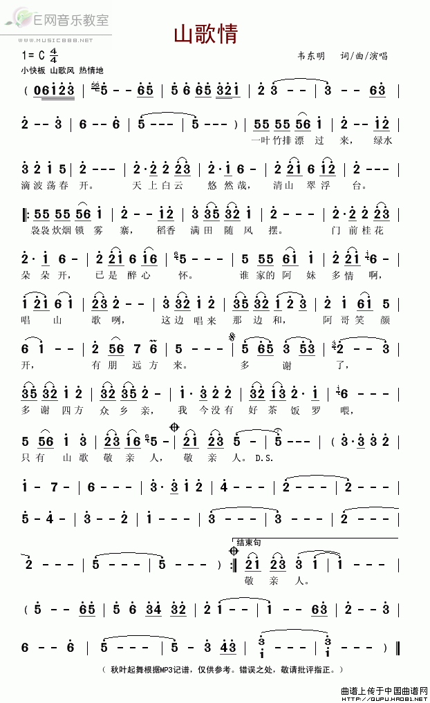 我今没有好茶饭咯喂 只有山歌敬亲人 敬亲人