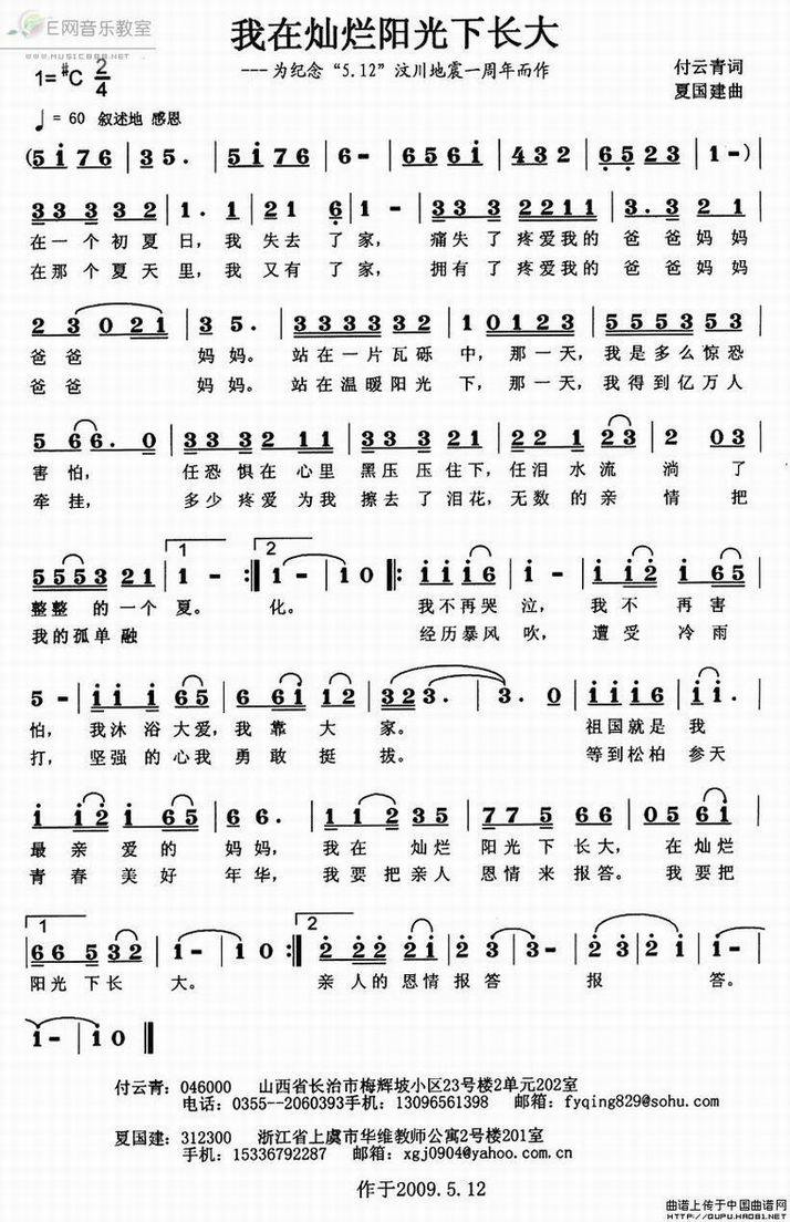 >> 我在灿烂阳光下长大-原创歌曲(简谱)