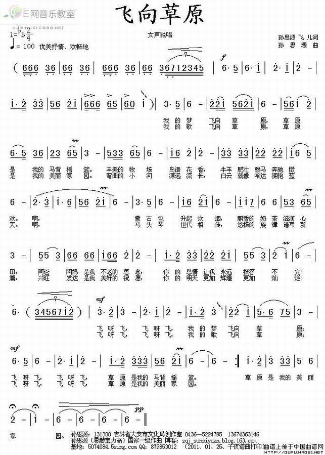 >> 飞向草原-女声独唱(简谱)