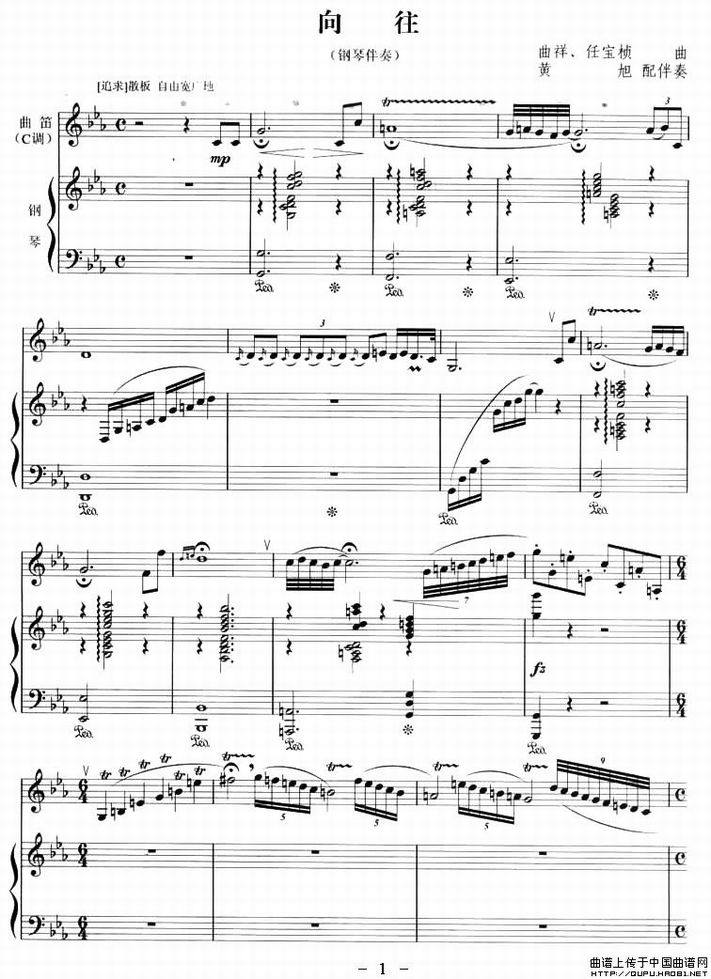 向往-曲笛独奏(带钢琴伴奏_五线谱) (1)