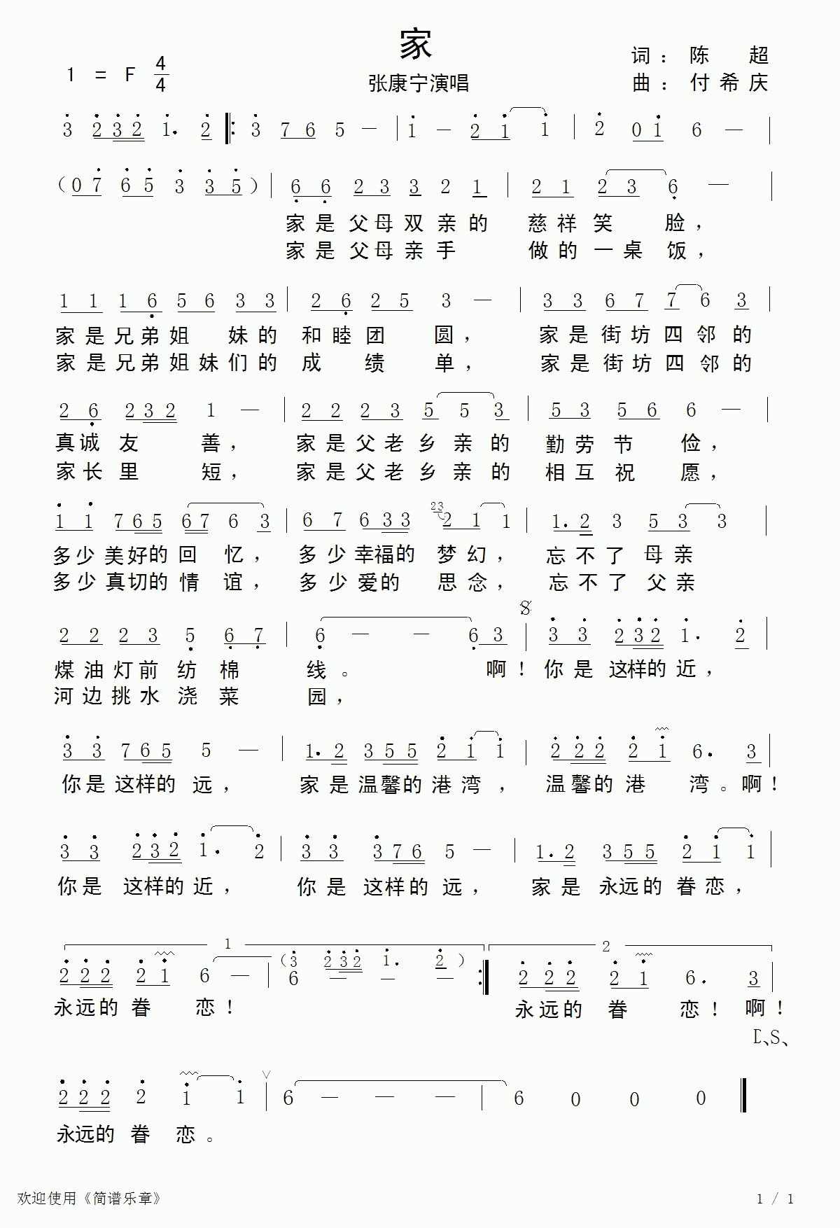家-张康宁(简谱)