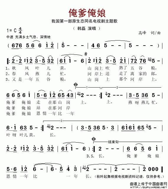 我国第一部原生态电视剧《俺爹俺娘》主题歌
