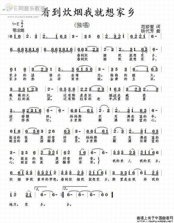 >> 看到炊烟我就想家乡-原创歌曲(简谱)