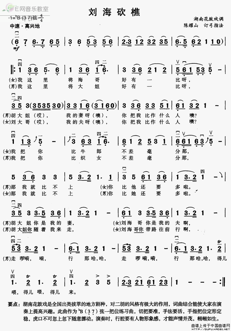 >> 刘海砍樵-湖南花鼓戏调(二胡曲谱)